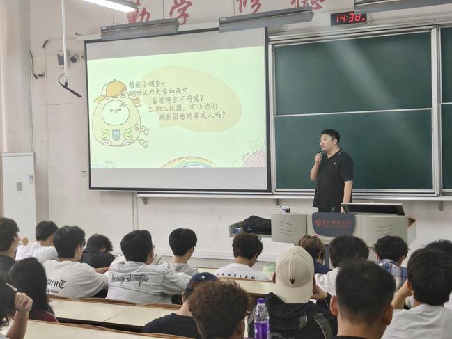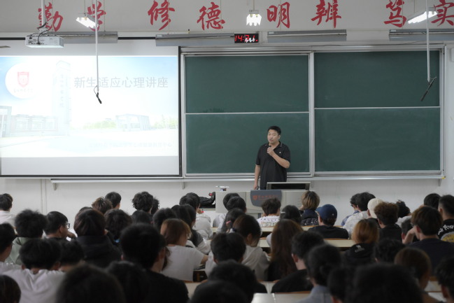 讲座伊始,张主任带领学生参与“雨点节奏”游戏,瞬间活跃了讲座现场的氛围。短暂互动后,张主任结合新生当前存在的适应性困惑,从生活、学习、经济、人际关系四个维度切入,以丰富的实际案例为依托,详细讲解了“兴奋、困惑、调整、稳定”四阶段的适应特征,向新生深入剖析大学生活中常见的心理问题,并进一步明确这些“新生适应不良综合症”均为正常表现,并从生活、人际和学习上提出科学应对策略,为新生心理适应指明方向。