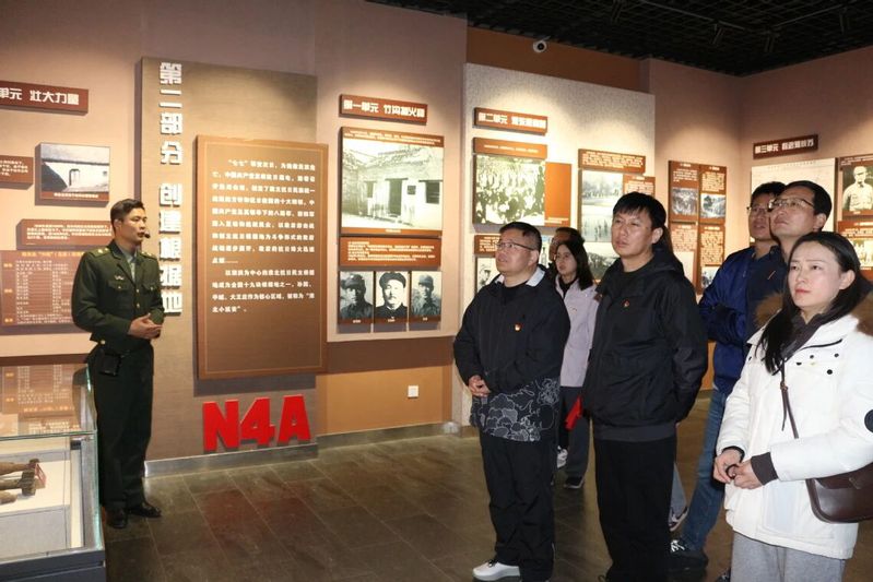 二是聆听革命故事主题党课。在名录墙前,随着讲解员的生动讲述,党员们仿佛穿越时空,深切感受到新四军四师与大王庄百姓间那紧密相连的“鱼水深情”,也更加坚定了自己为人民服务、传承红色基因的决心。随后,在新四军四师革命旧址,一堂主题党课《雪白千里,枫红万年——捧读彭雪枫红色家书》如同一盏明灯,照亮了党员们的内心世界,彭雪枫与妻子林颖之间的红色爱情故事感人至深。党员们专注聆听,沉浸其中,深刻感悟到革命先辈们在艰难困苦中始终坚守信仰、无私奉献的伟大精神。