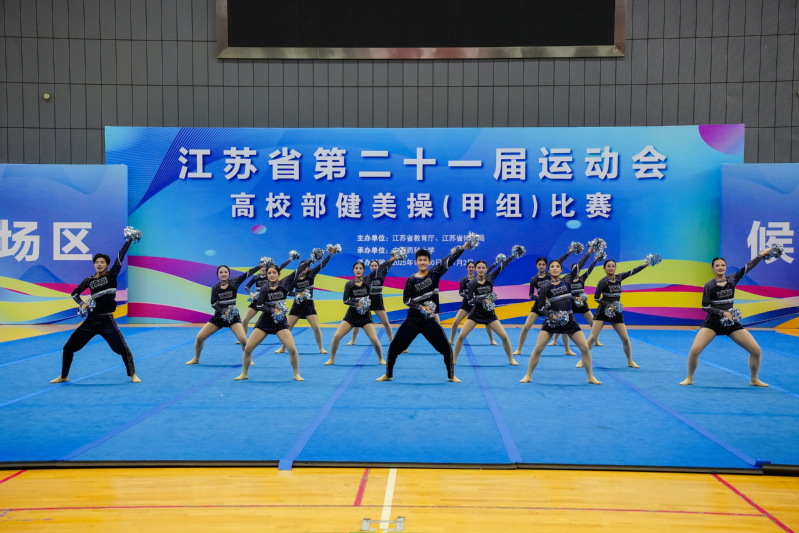 10月30日,由江苏省教育厅、江苏省体育局主办的第21届运动会高校部健美操(甲组)比赛在南京开幕。本次赛事由中国药科大学承办,共设男子单人操、女子单人操、混合双人操、花球啦啦操、技巧啦啦操等七个竞赛项目,吸引了来自南京大学、南京师范大学、苏州大学、南京体育学院等23支省内高校代表队、300余名运动员、教练员齐聚省会,同台竞技。