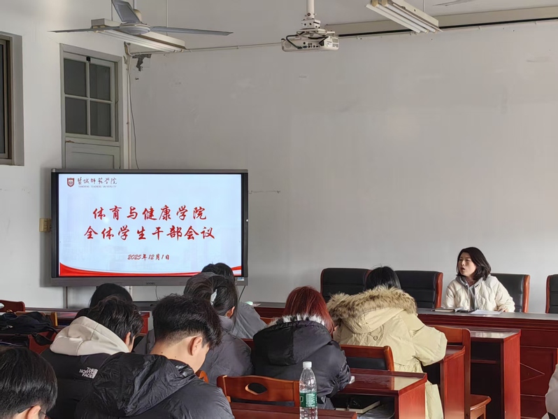 为强化学生干部责任意识,明确安全管理与日常工作要求,12月1日,体育与健康学院在体育楼301召开学生干部专题会议,由陈琰老师主持,全部班长、团支书、学生会主席以及各部门部长参会。