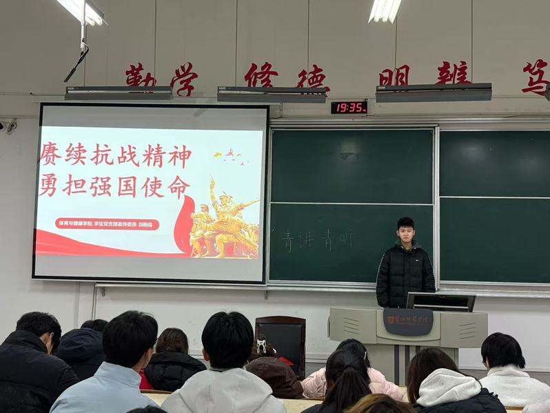 12月4日晚,我院开展“赓续抗战精神 勇担强国使命”主题宣讲活动,学生党支部宣传委员刘翰孺担任主讲。