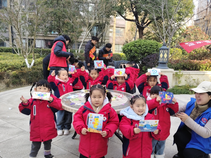 活动在轻松活泼的热身操中拉开序幕。学院青年志愿者发挥专业特长,带领孩子们开展趣味体能游戏,通过寓教于乐的方式激发幼儿运动兴趣,传递健康生活理念。随后进行的创意手工环节中,孩子们在志愿者指导下制作立体贴画,动手能力与想象力得到充分锻炼。现场互动热烈,氛围温馨,青年志愿者们展现出热情细致、负责担当的精神风貌,得到社区与幼儿园的一致好评。