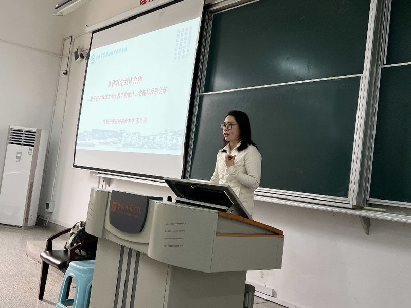 校外优质课程展示环节,由盐城市康居路初中王爱峰老师、范巧丽和盐城市鹿鸣路初中丁璇三位老师分别进行了课程展示和实施经验分享。三位长期从事体育基础教育的一线教师分别进行了篮球、舞龙、排球项目的课程展示,并结合课程设计的新课标解读、教学大单元设计、课程设计与创新进行了细致的讲解与分享。