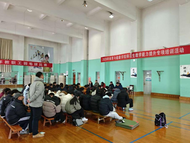 20251229日—2026114日,为进一步提升我院体育教育专业本科生及体育教学方向研究生的人才培养质量,强化未来体育教师教育综合素养,我院通过专题讲座、校外优质课程展示、模拟授课试讲等形式举办了师范生教学能力提升专项培训活动。