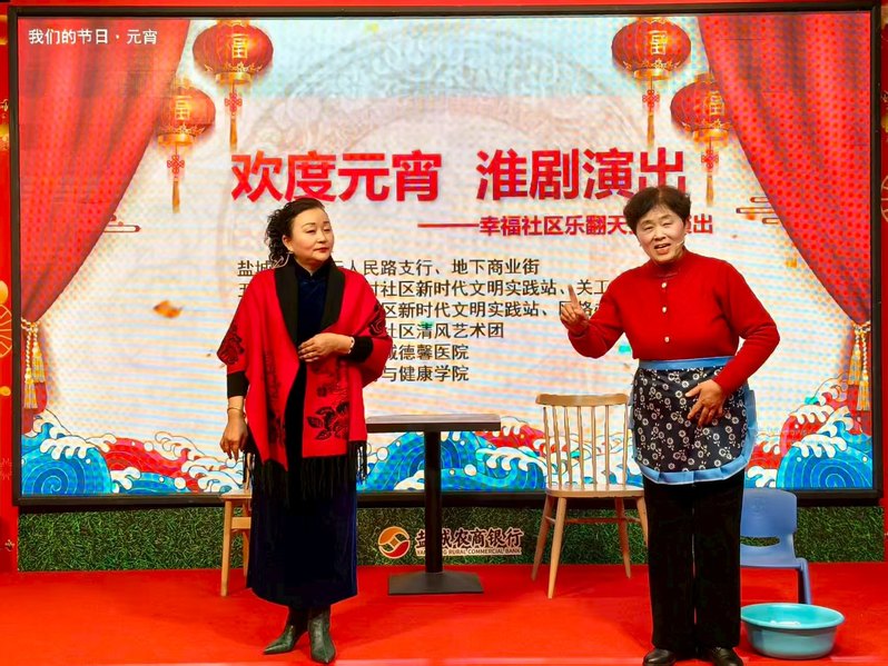 活动现场热闹非凡,台上淮剧经典唱段轮番登场,演员们婉转的唱腔、精致的扮相,引得台下掌声不断。学生们一边协助维护秩序,一边也被精彩的表演吸引,不少同学是第一次近距离接触淮剧,纷纷表示“原来传统戏曲这么有韵味”。演出间隙,志愿者们组织社区居民一起参与元宵习俗知识问答,在欢声笑语中感受浓浓的节日氛围。在公益义诊服务区,学生们主动搀扶行动不便的老人,协助医护人员测量血压、耐心解答疑问,细致周到的服务赢得居民连连称赞。