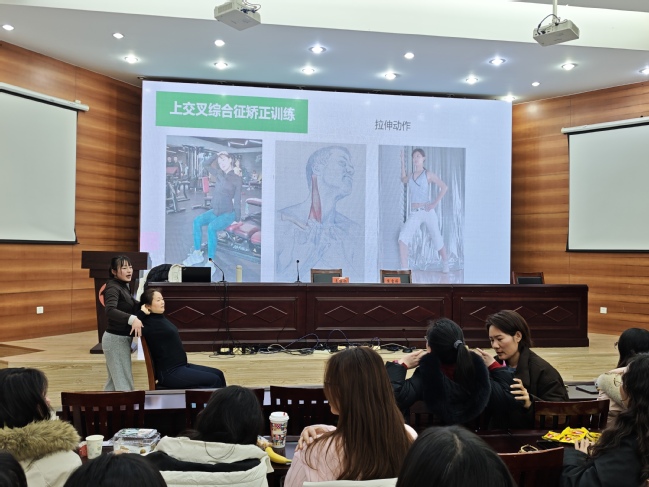 活动由人工智能学院党委书记郭晓俐主持,特邀盐城妇幼保健院妇保科袁丽娟主任、我院侯雪婷老师担任主讲嘉宾。现场贴心准备了点心与水果,为参与者营造轻松愉悦的交流氛围。袁丽娟主任以“爱与呵护,遇见更健康的自己”为题,从医学专业视角,深入浅出讲解女性健康管理要点,帮大家破解健康误区。随后,侯雪婷老师结合自身经验,分享女性科学运动技巧,助力大家在忙碌中兼顾健康与活力。分享结束后,两位老师与现场参与者亲切互动,耐心解答大家提出的各类健康疑问,切实解决实际困惑,现场氛围温馨融洽。
